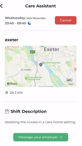 Once you've claimed a shift, you can send a message to the manager(s) by clicking "Message your employer" at the bottom of the shift.