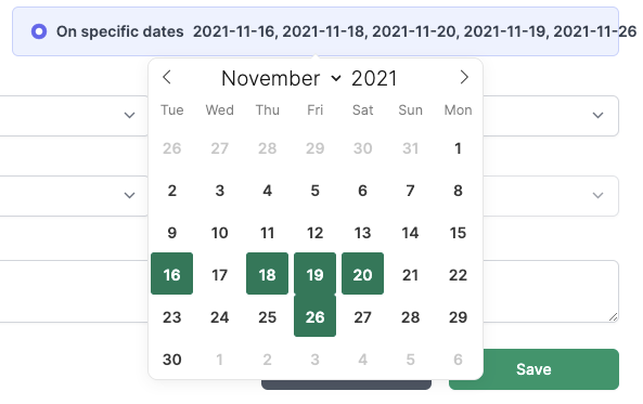 4. Select the date you'd like the shift to be posted on (it will be highlighted in green)