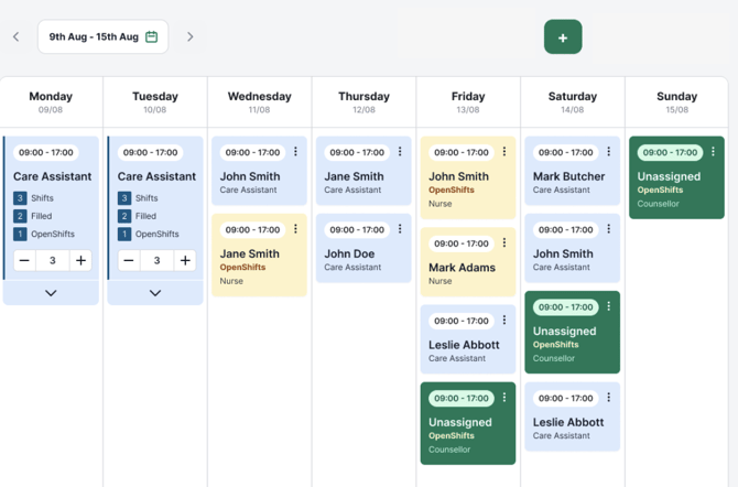 Once you've selected a site, you'll be able to view a weekly overview of shifts for that location. You can view a more detailed guide on the weekly overview here
